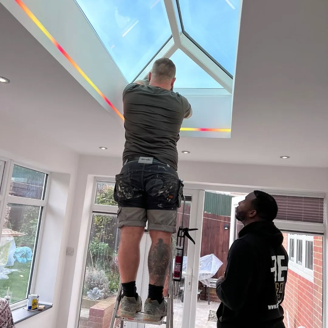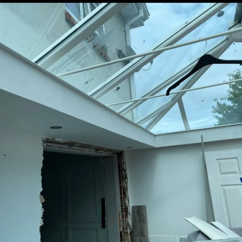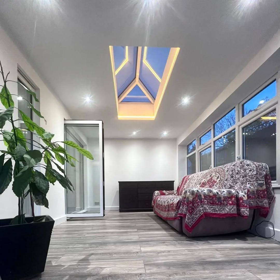 The clients had an old conservatory at the back of their home that was too hot in the summer and too cold in the winter. They wanted a year-round living space that was practical, well-insulated, and full of natural light. We replaced the conservatory with a new flat-roof extension, complete with a large lantern skylight to flood the space with daylight.